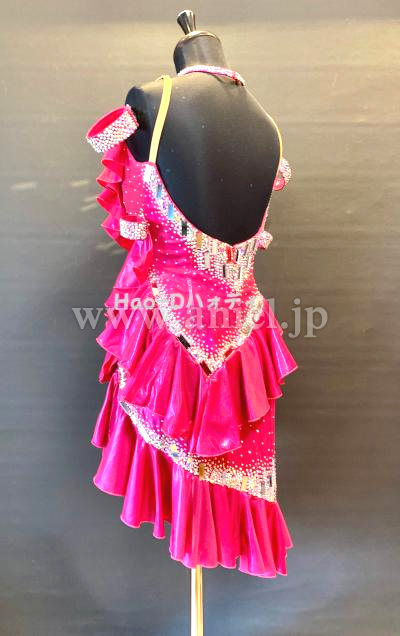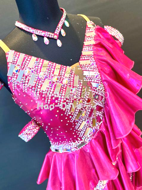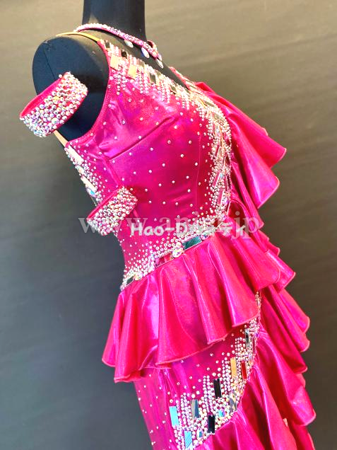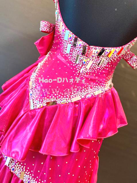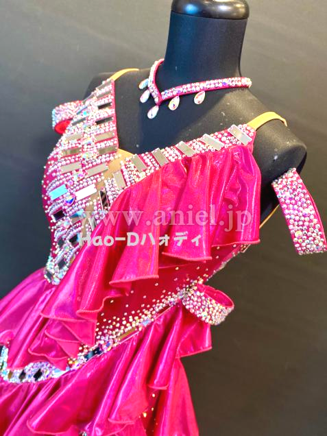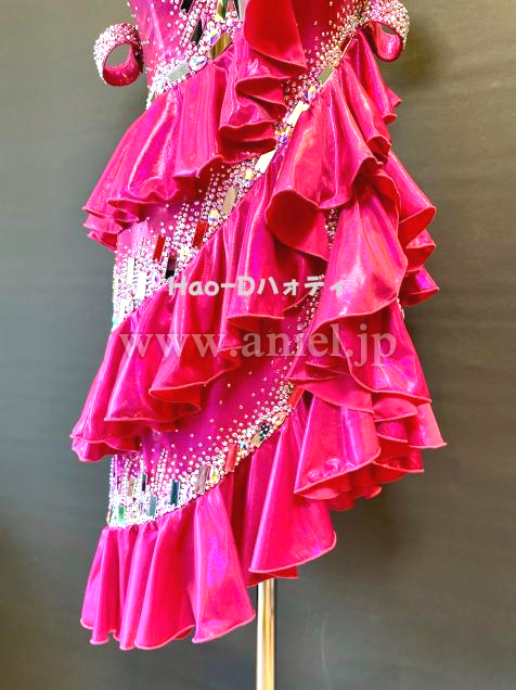 キャミスタイルに跳ね踊る斜めディヤードフリル、シルバーのミラーは角度によってキラキラ輝いてゴージャス