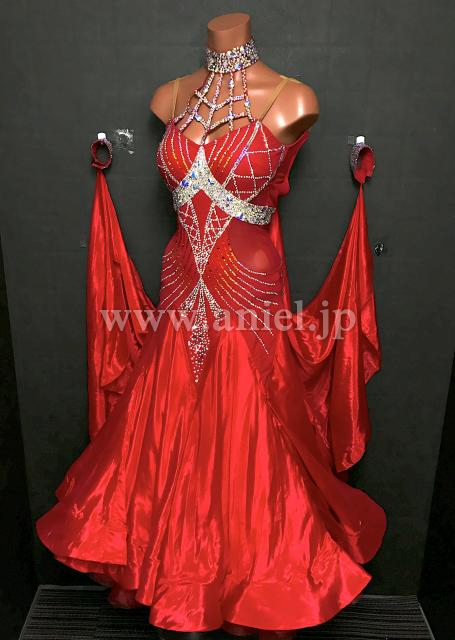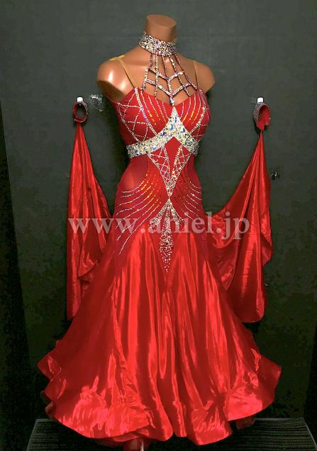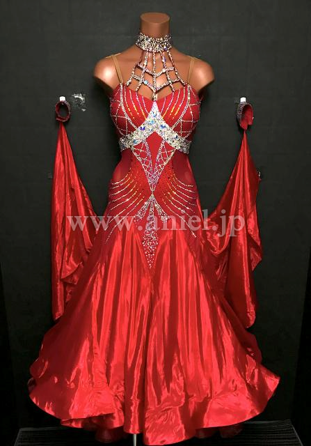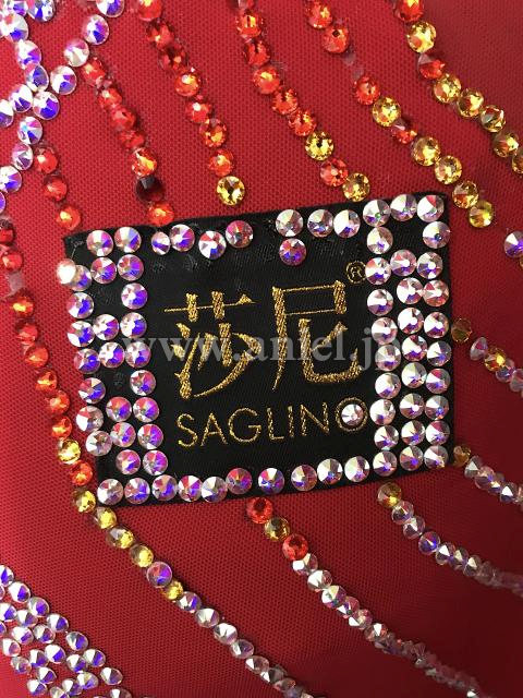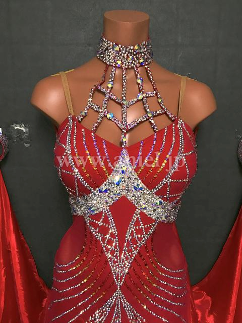 スワロフスキーストーンやスパンコールで美しいラインが描かれたドレスです。