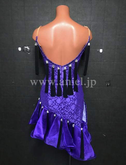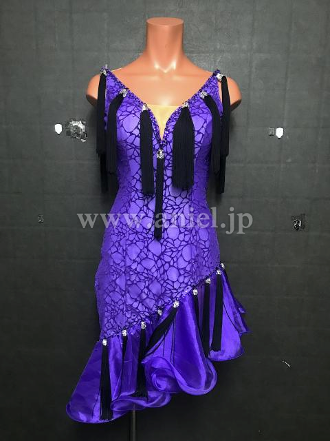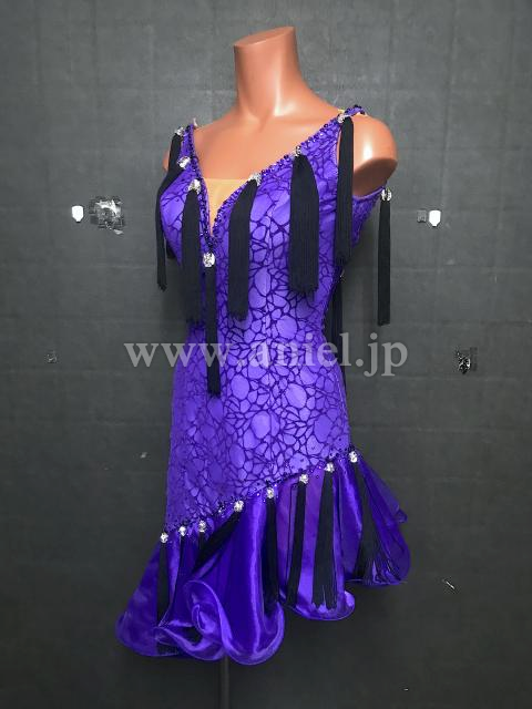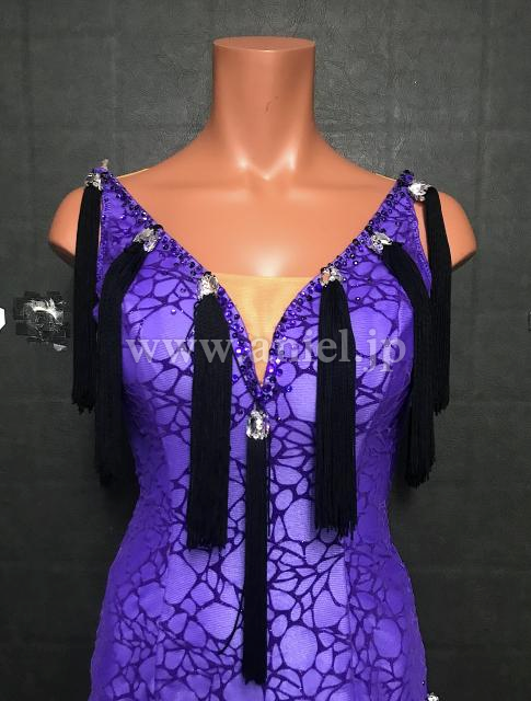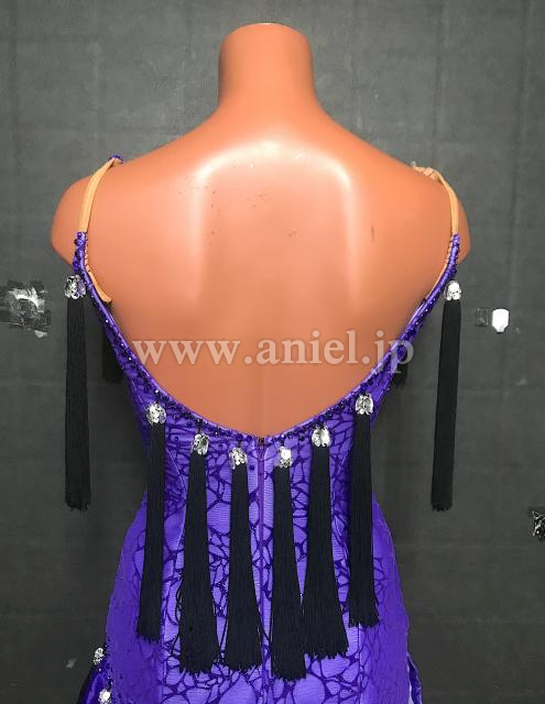 紫のボディに黒のタッセルフリンジがよく踊るドレスです。