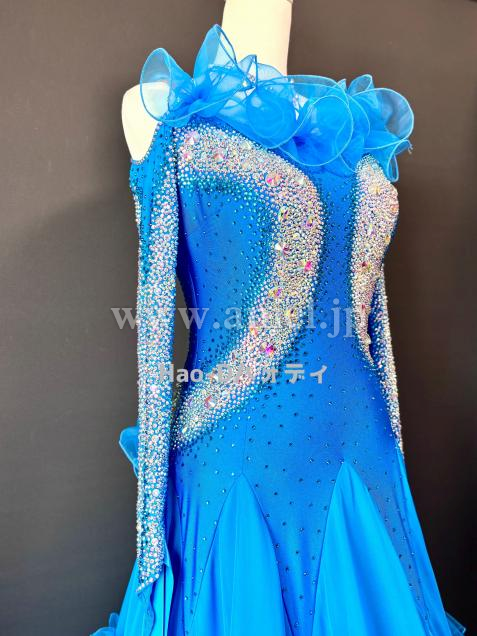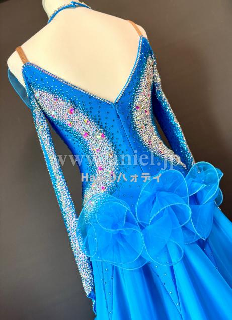 【海を思わせる素敵なコバルトブルーのペースにクリスタルオーロラのストーンを豪華に装飾したドレス】