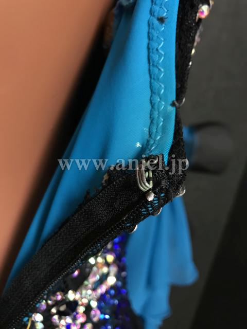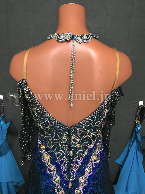 レース生地にオーロラ、ブルーのストーンのラインが飾られています。