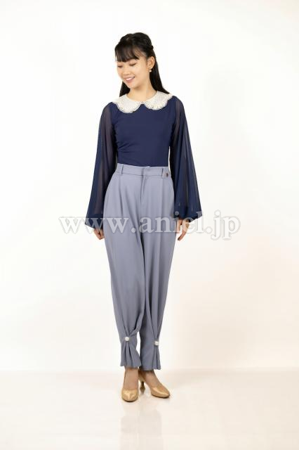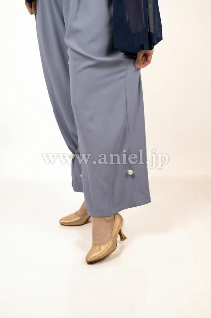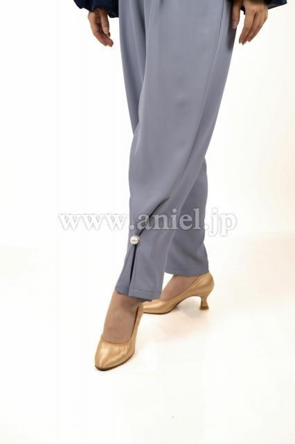 ①ズボンについた輪にパールを通すことで、足首まわりをすっきりと絞ることができます。