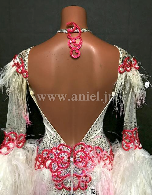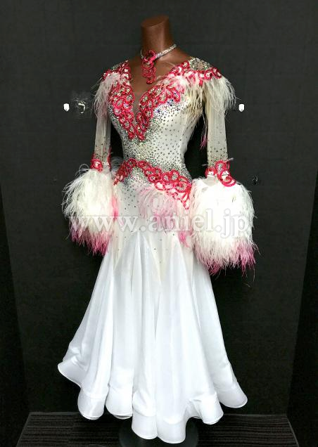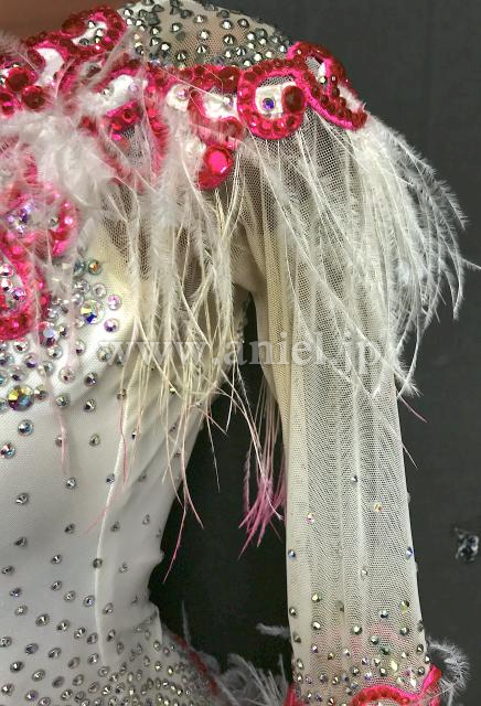 肩と袖には羽根があしらわれボリュームがありトップに視線が行くので背を高く見せる効果があります。