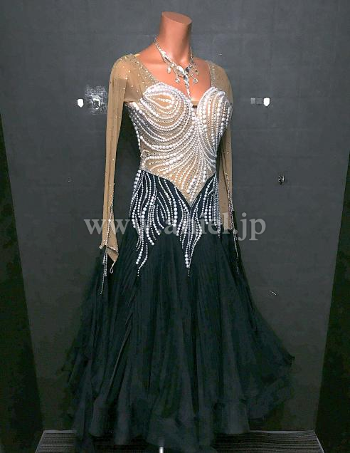 パールとクリスタルのラインが豪華なドレスです。