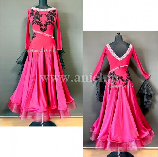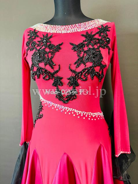 深みのあるワインレッドに繊細なブラックモチーフを装飾したドレス