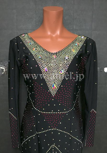 黒のボディにオーロラ、ピンクストーンが飾られています。