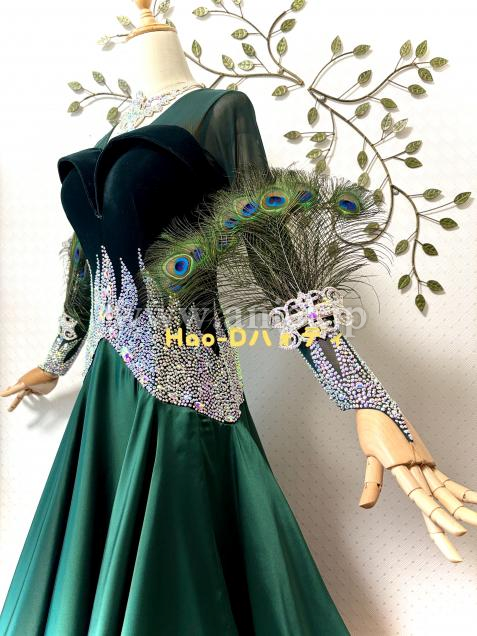 目を惹くロングピーコック羽の腕飾は、上向き下向きどちらもお好きなように使用可能