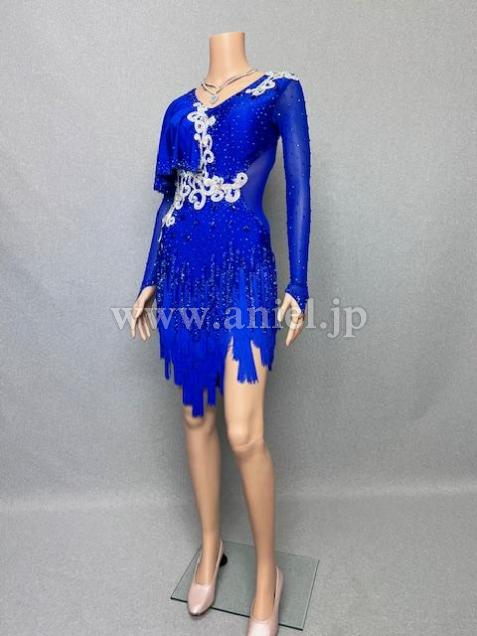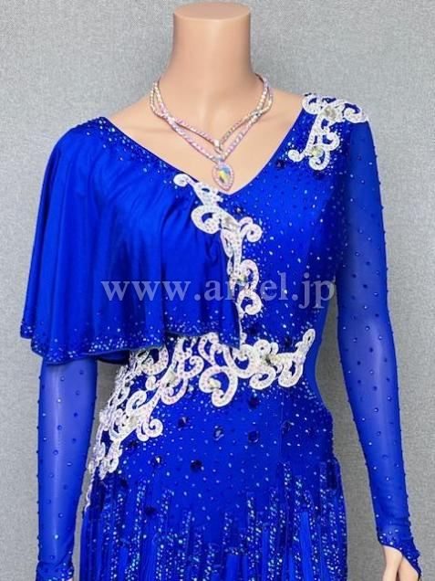 鮮やかなロイヤルブルーに白いコードレースが爽やかなドレス。