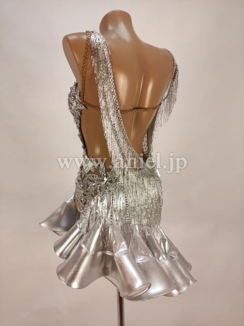ボディはストーン布フリンジとモチーフレースにストーンが豪華に飾られています。