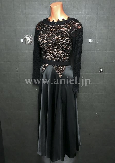 ベージュのボディに黒レースの生地が重ねられたシックなパソドレス。