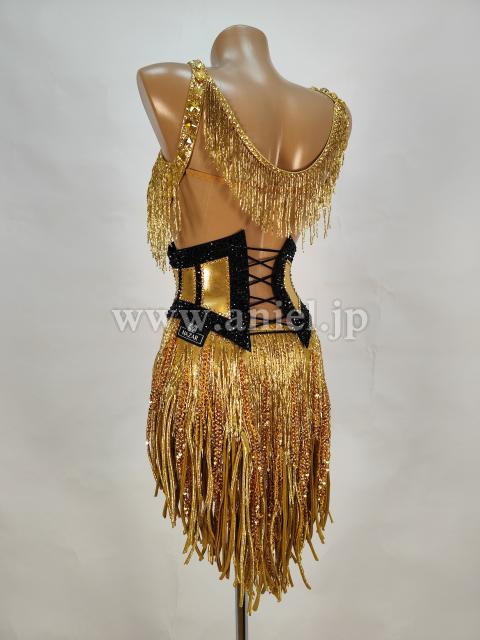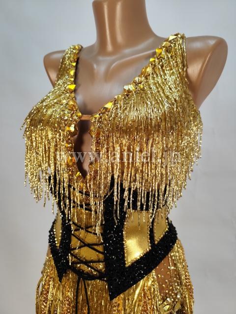 ゴールドのビーズフリンジやストーンがとてもよく光るドレスです。