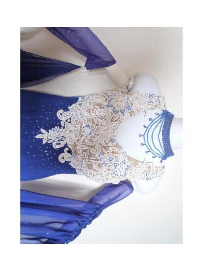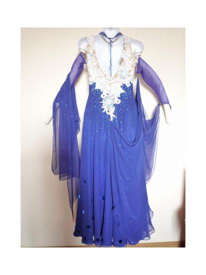 購入時より500個程サファイア色の石を全体に足し、裾に揺れるスパンコールも付けています。