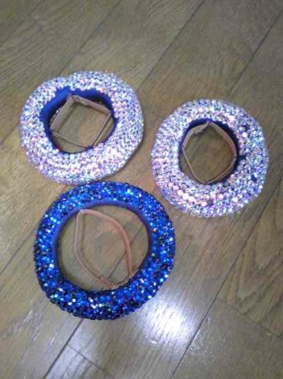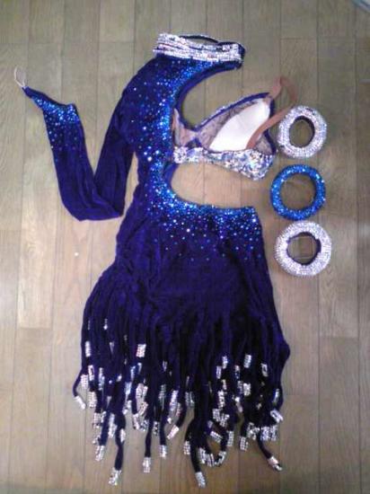 ブルーの生地はベルベットです。ブラ部分はオーロラストーンで埋め尽くされています。