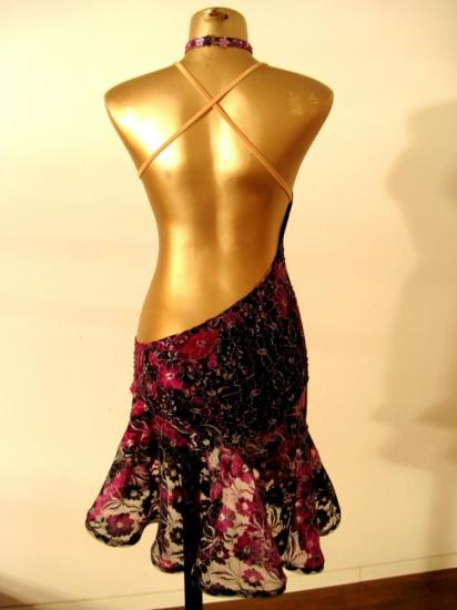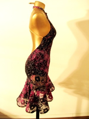 裾には細いホースヘアがついてよく踊ります。左足元と左腰が大胆に開いていて、アシンメトリーなデザインなので、足が長くスタイルがよく見えます。別途手袋や腕輪をつけるとよりゴージャスになると思います。※現在海外より取り寄せ中ですので、届き次第、試着のご案内が可能です。