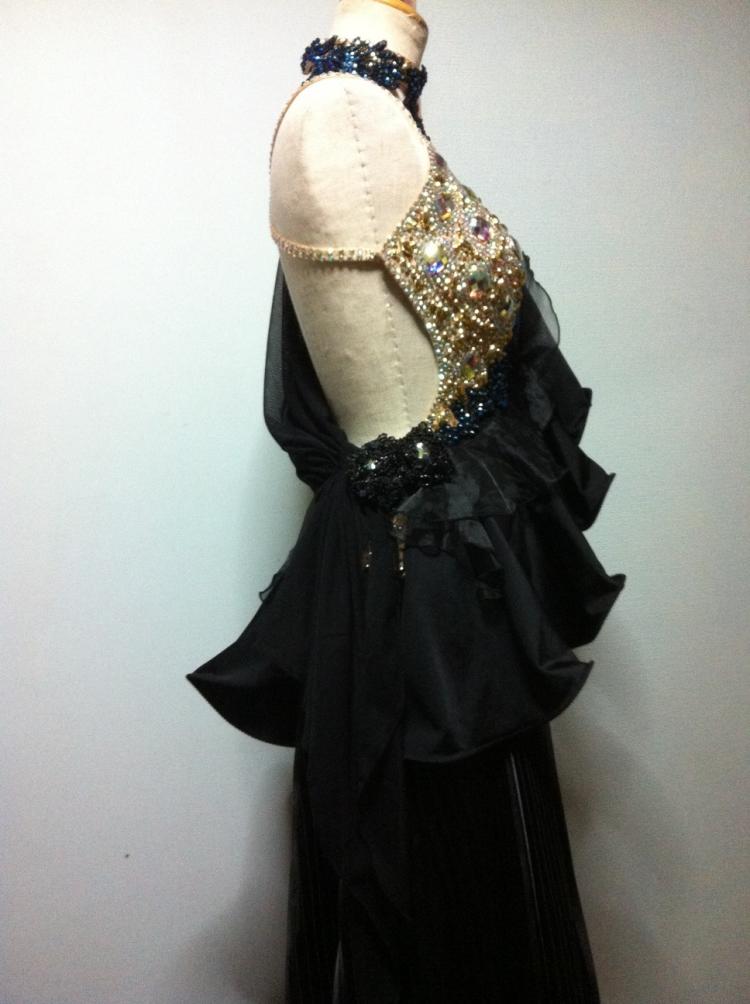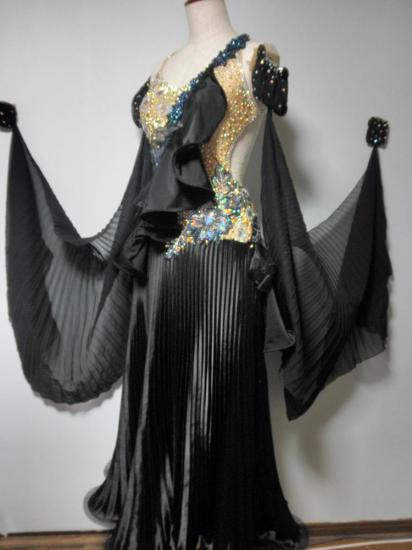 ラインストーン贅沢に使って、すごく豪華なドレスです。スカートとフロートがプリーツ生地で、よく広がります。