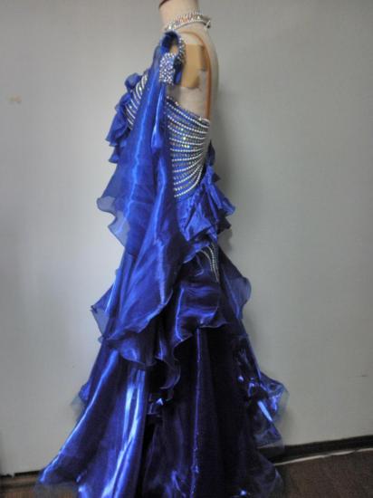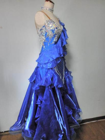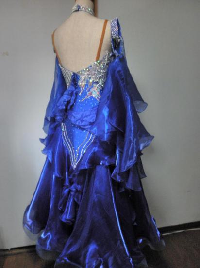 ロイヤルブルーが非常に目立つドレスです。ストーンが豪華に使われており、見る角度によって印象が違います。