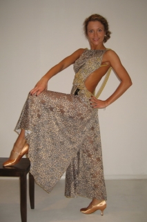 豹柄プリントの生地にレースが飾られています。