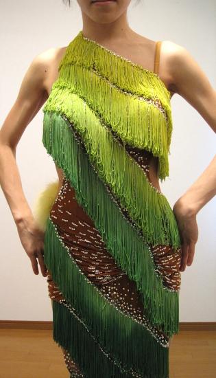 緑のグラデーションがキレイで、とても目立つドレスです。