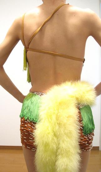 フリンジが斜めについていてカットが計算されており、とてもスタイルがよく見えます。背を高く見せたい方にもおすすめです。