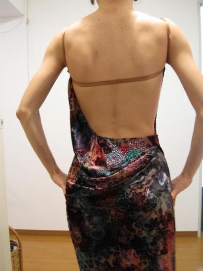 前身頃の目立つ部分とヒップの部分にスワロフスキーがついています。