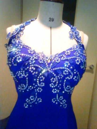グラデーションが美しい清楚な雰囲気のドレスです。背中のケープから両腕のグローブに繋がります。
