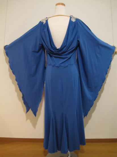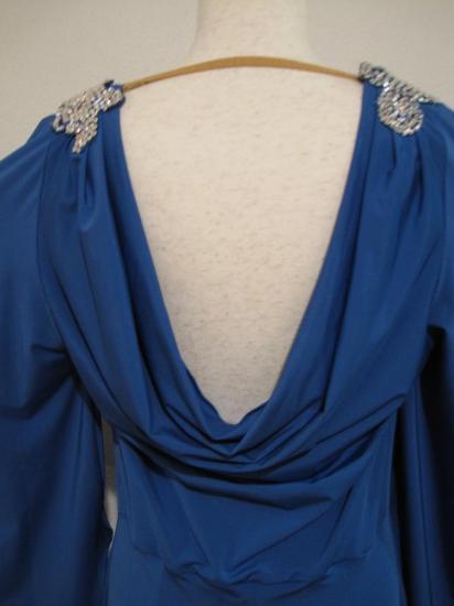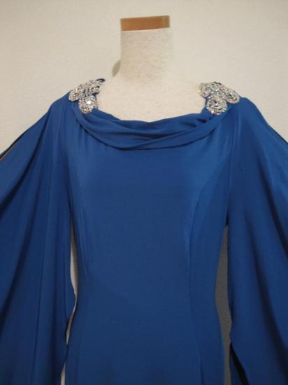 シンプルですが、上品で方のモチーフがポイントのドレスです。モチーフはスワロフスキーオーロラで飾られています。
