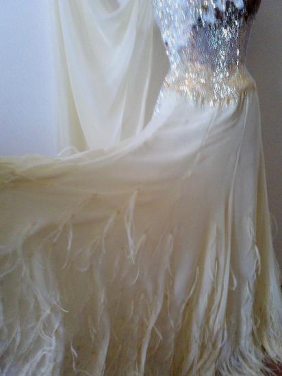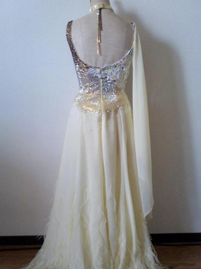 清楚で上品なドレスです。裾には羽がついています。定価38万円位でした。