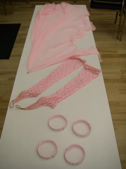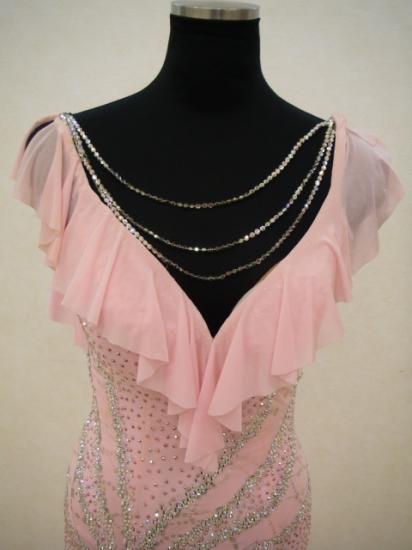 定価50万円、全体にスワロフスキーがついてとても豪華なドレスです。アームはグローブと腕輪の2種類が付いています。