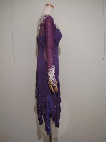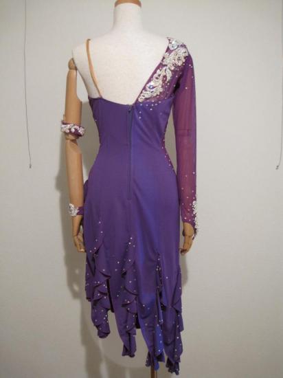とてもシルエットの美しいチャコットのドレスです。片方が手袋となっており、もう片方には腕輪が2つついているので、露出のバランスもよく、スタイルがよく見えます。生地も丈夫で、石も取れにくくよいドレスです。スカートのフリルにもストーンがついて踊ると揺れてきれいです。