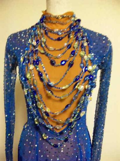 スカート部分は 竹ビーズとフリンジで動きがよく出ますし 胸元は 複数のネックレスが付いていて とても豪華に見えます。