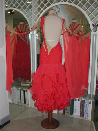 上半身はストレッチ素材、スカートはジョーゼットの4枚重ねとなっています。ストーンはスワロフスキーを約3200個使用しています。ドレスはイタリアのアトリエ石の補修と手入れを済ませ良い状態です。