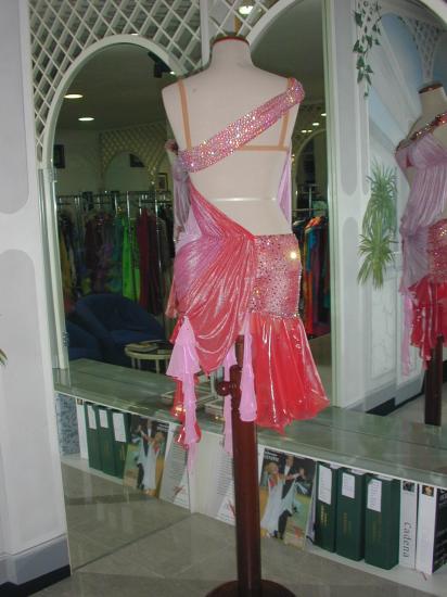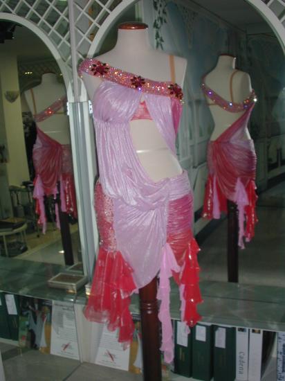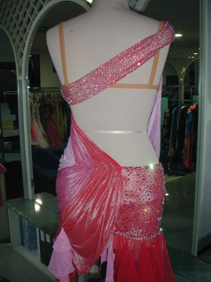Centini Alta Modaのスポンサー選手2009年ブラックプールシニアラテンの優勝者Stephanie Godet選手の色違いのスポンサードレスです。http://www.youtube.com/watch?v=-vcdj1PoU2U ここで踊っている画像がご覧いただけます。ただしこのコンペの後スカートにもう少し布が足されてもっとドレスが踊るようにお直しされております。ストーンは全てスワロフスキーが使われております。ドレスはクリーニングの後イタリアのアトリエで石の補修などもすべて済ませ大変良い状態です。内側には少しタンニングローションの汚れがあります。(外からは全く見えない部分)