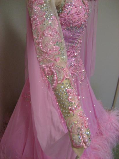 とても綺麗なシルエットで足元の広がりがとてもキュートです。素材がストレッチしないため細身の方向け。表は綺麗ですが、少し古いドレスなので、内側に劣化があり、パットも変えていただいた方がよいと思いますので、格安にて販売します。