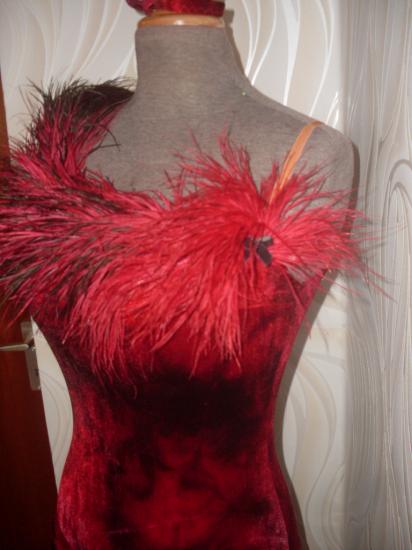 ワインレッドのベルベットにオーストリッチがついていて、