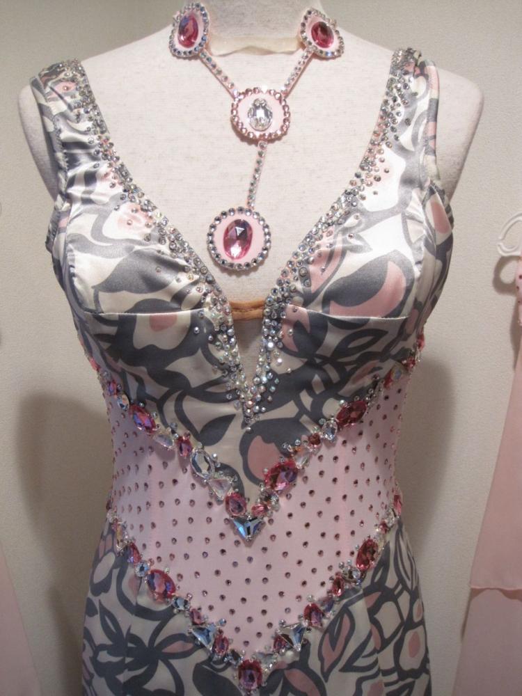 スカ−トとはグレーのオ−ガンジーとピンクのジョ-ゼットで優しい中にもしまった感じがあります。
