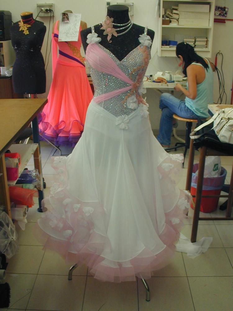 Centini Alta Modaのスポンサー選手2009年ブラックプールシニアラテンの優勝者Stephanie Godet選手のスポンサードレスです。スポンサードレスですので大変豪華な作りです。ストーンは全てスワロフスキーが使われております。ドレスはイタリアのアトリエで石の補修などもすべて済ませ大変良い状態ですが、ラテン選手のスタンダードドレスですので内側の見えない部分に少しタンニングローションあとがありますのでご了承ください。このドレスは先日のベルギーで行われたWorld Championshipsで一度着用されただけですので、ほぼ新品同様です。Godet選手は非常に小さい選手で日本人にあうこのような小さな選手向きのスタンダードのイタリア製スポンサードレスはなかなかありませんので希少価値のあるドレスです。裾上げ、袖詰めなど簡単なお直しはご希望がありましたら無料でお直し可能です。クリスマス時期をはさみますのでとお取り寄せには約1か月かかる予定です。