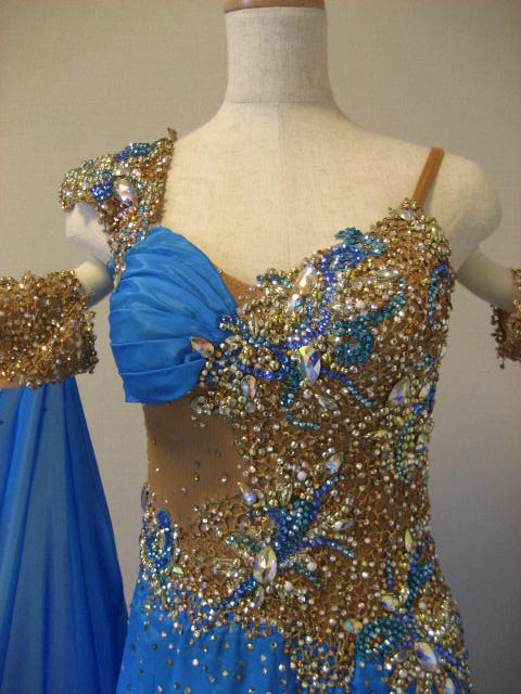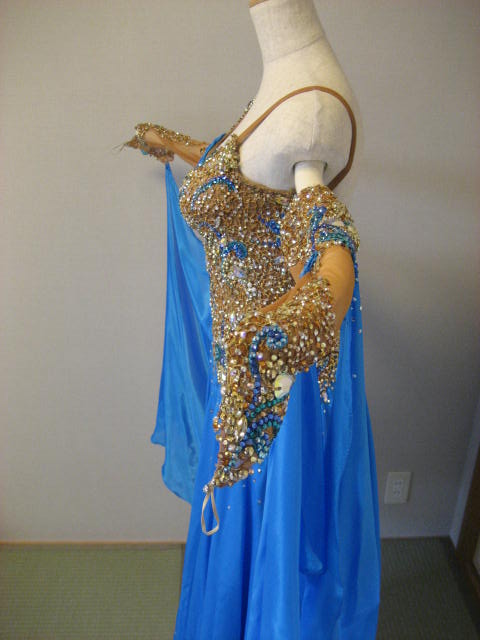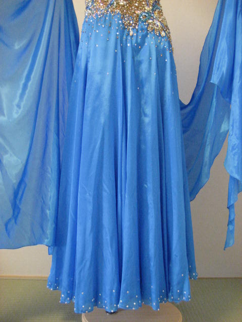 サテンの鮮やかなブルーで、生地が軽いのでドレスが良く踊ります。