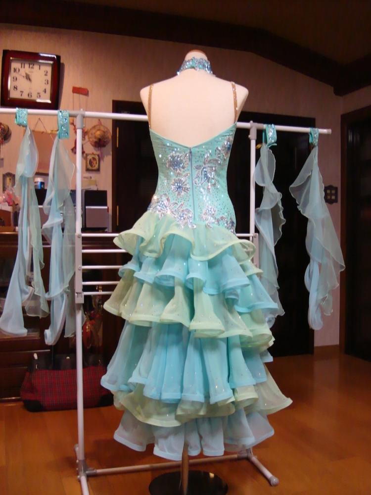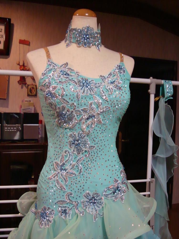 未使用品です。ラインストーンはスワロスキーです。ショップから購入した後,ラインストーンの数が少なかったので,自分で丁寧に貼り足しました。沢山貼りましたのでとっても豪華になったとおもいます。これからの季節の競技会にぴったりだと思います。