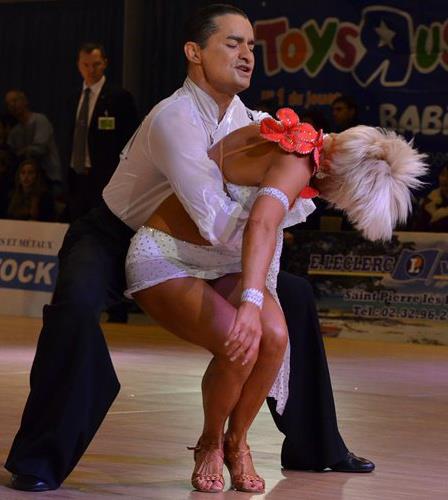 Centini Alta Modaのスポンサー選手2009年ブラックプールシニアラテンの優勝者Stephanie Godet選手のスポンサードレスです。スポンサードレスですので大変豪華な作りです。ストーンは全てスワロフスキーが使われております。ドレスはイタリアのアトリエで石の補修などもすべて済ませ大変良い状態ですが、選手のラテンドレスですので内側の見えない部分にタンニングローションのあとがありますのでご了承ください。Godet選手は非常に小さい選手で日本人にあうこのような小さな選手向きのイタリア製スポンサードレスはなかなかありませんので希少価値のあるドレスです。