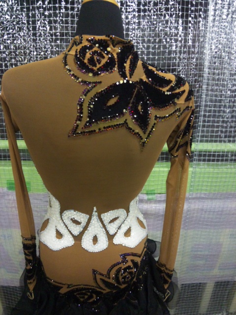 ウエストの白は全てスパンコールが縫い付けてあります。足は右側にスリットが入っています。