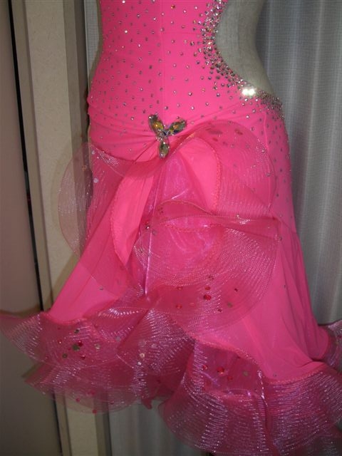 裾のホースヘアにはスパンコールとピンクの石がついていて、回転したときにとても綺麗です。