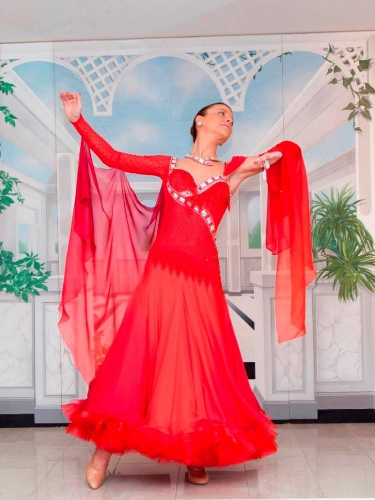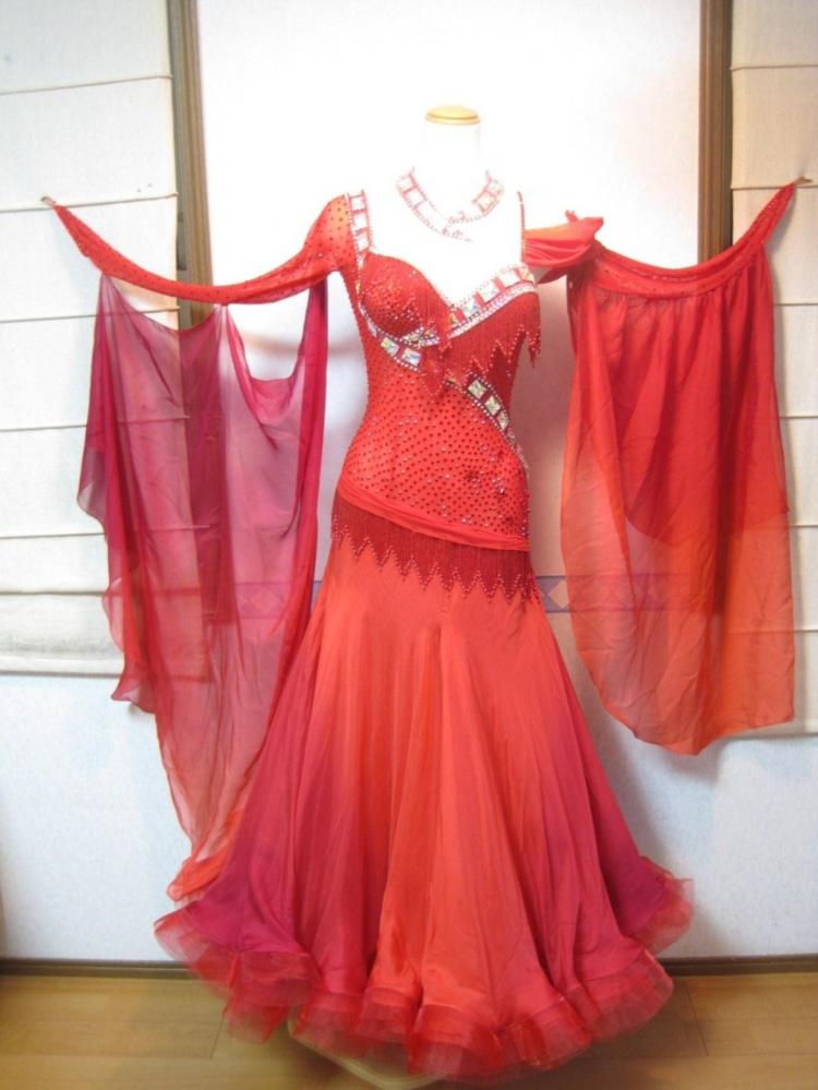 3Dのお花をバックにあしらった新品のドレスです。フロートとスカートにはブラデーションのイタリア製の高級シルク地を使用し、微妙な色の変化が大変美しいドレスです。また上半身には縫い付け石をふんだんに使用し、イタリア製高級ビーズを1点、1点手作業でフリンジに仕上げた大変手の込んだドレスです。スカートは1枚目〜3枚目がピュアシルク、4枚目がオーガンジーとなっており、シルクならではの大変軽くよく踊るドレスです。是非本物のイタリアのドレスの着心地をお試し下さい。