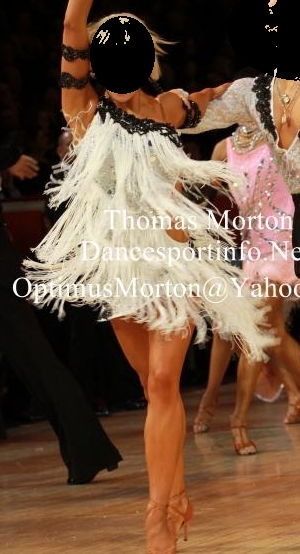イギリスの生地とたくさんのスワロフスキーが使われています。フリンジが踊って石がよく光るとても目立つドレスです。