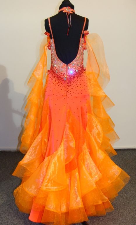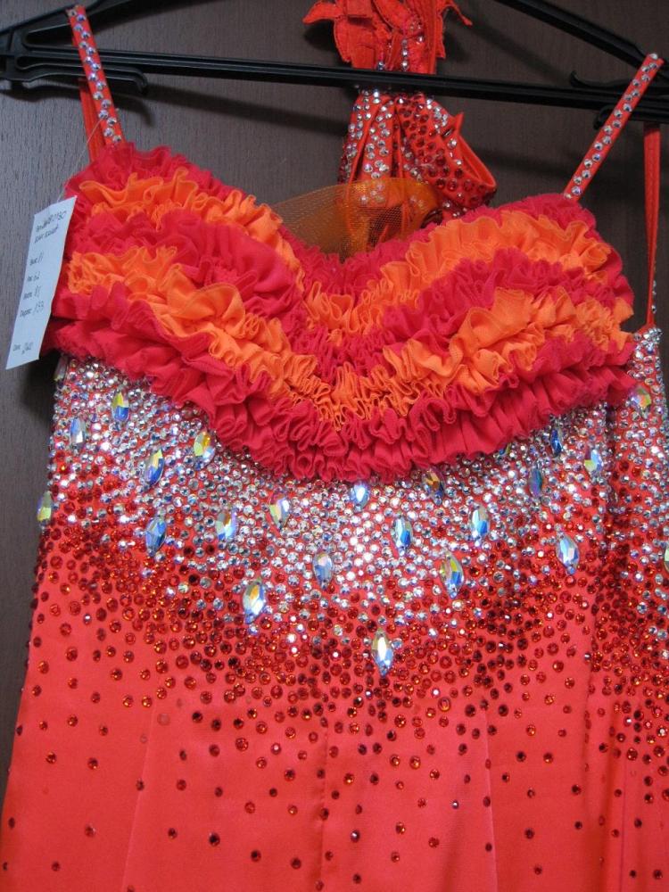 胸元とスカートにボリュームのあるとてもキュートなドレスです。ボディと背中にスワロフスキーがびっちりついています。