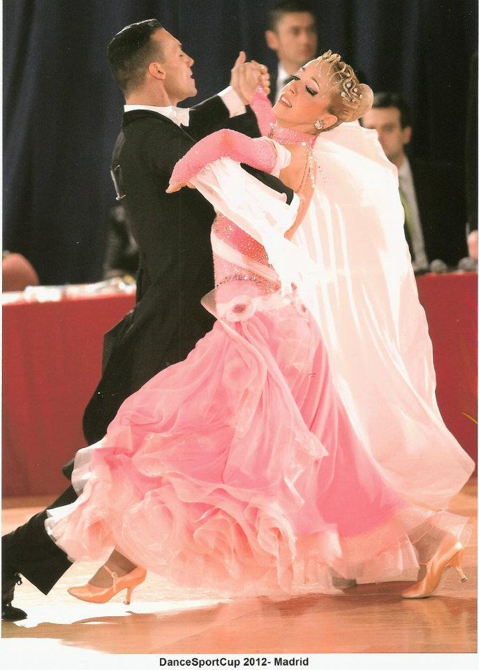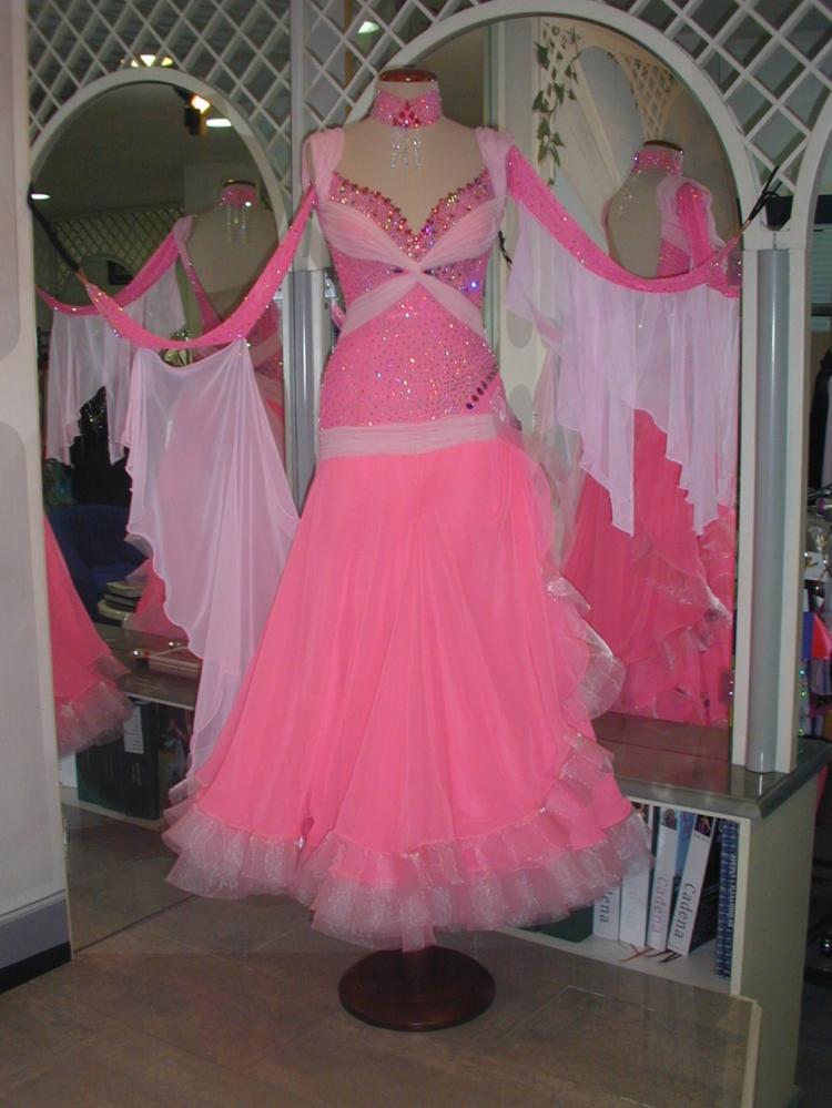 ヨーロッパのトップ選手のスポンサードレスで、今年になってから流行している3Dのお花バックとサイドにをあしらった最新のドレスです。ボディーを埋め尽くすスワロフスキーのラインストーンで上半身がとても輝くドレスです。スカートは1枚目〜3枚目がジョーゼット、4枚目がオーガンジーとなっており、大変軽くとてもよく踊るドレスです。是非本物のイタリアのドレスをお試し下さい。附属品:ドレスケース、キモノ(新品色指定不可)