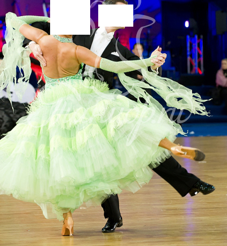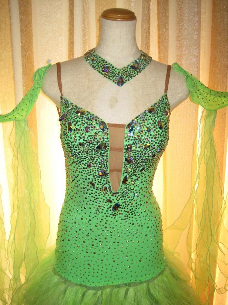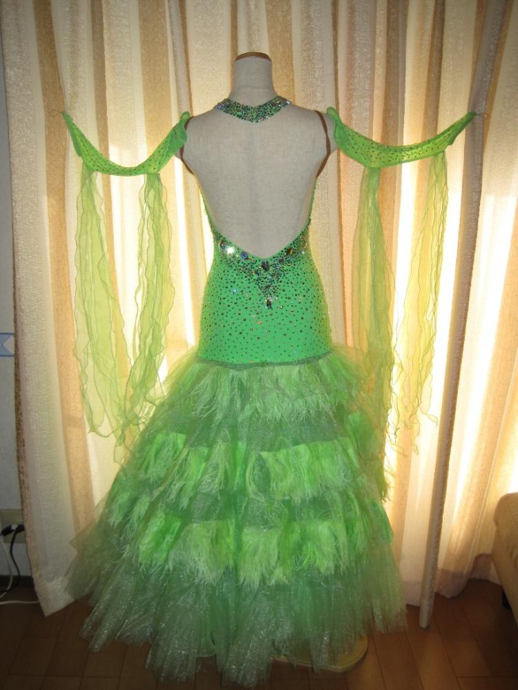 今年ヨーロッパで流行中のチュールを使った大変豪華なドレスです。チュールの間にオーストリッチのファーが使われスカートに動きが出るようになっています。布地ファーなど素材はは全てクリスアンのものを使用、ストーンは8000個以上のスワロフスキーと縫い付け石も多数使用しています。トータル数回の使用ただけで、大変きれいな状態です。身長163以上の背の高い方に似合うデザインです