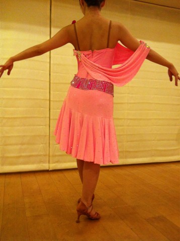 ほぼ新品なので、石落ちもなくとても綺麗です。石が沢山ついたベルトがゴージャスで、スカートもよく動きます。胸元はストーンで飾られており、とってもキュートなドレスです。