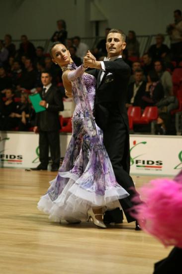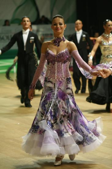 柄のスカートが個性的で、非常に豪華で美しいスポンサードレスです。