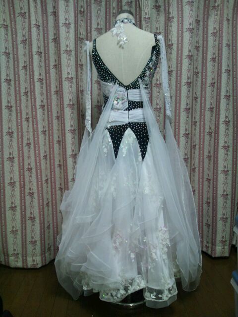 スカートは白いオーガンジーにオーロラスパンコールで刺繍をほどこされた美しい生地を使用しています。アンダースカートはピュアホワイトのサテンを使用。可愛すぎず大人すぎず、どなたにも似合うデザインです。