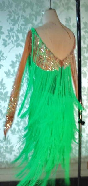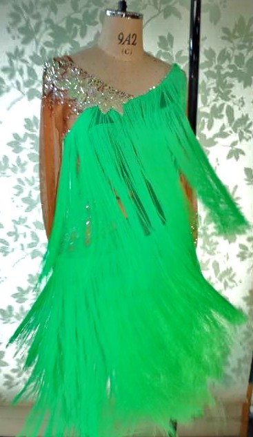 全体がフリンジなのでドレスが良く踊り、露出が少なくてもフロアーに映える色です。